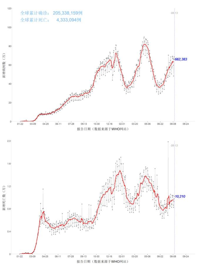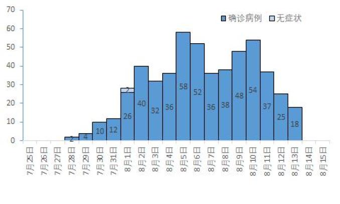 截止8月13日24时,全国累计报告确诊病例1288例,无症状感染者106例,合计感染者1394例。共涉及 18 省 49 市,病例数居前5位的地市为扬州、南京、郑州。