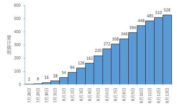 5-2瑞丽疫情8月13日,瑞丽新增1确诊,病例新增及累计报告情况如下所示:
