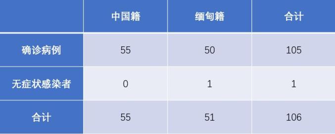 云南自7月4日报告本土确诊病例以来,截止8月11日24时,累计报告确诊病例115例(中国籍62例,缅甸籍53例),无症状感染者2例(均为缅甸籍)。其中,瑞丽市共报告确诊病例105例,无症状感染者1例,陇川县报告确诊病例10例,无症状感染者1例。