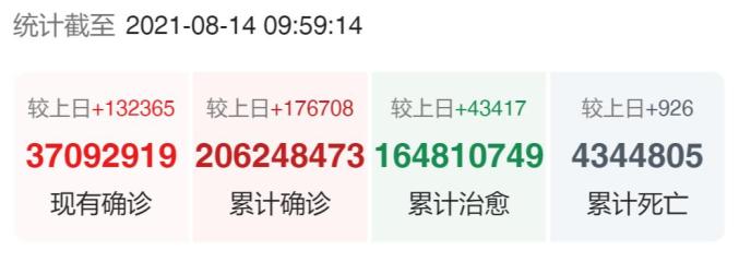 截至8月13日24时,据31个省(自治区、直辖市)和新疆生产建设兵团报告,现有确诊病例1907例(其中重症病例62例),累计治愈出院病例87783例,累计死亡病例4636例,累计报告确诊病例94326例,现有疑似病例2例。累计追踪到密切接触者1144391人,尚在医学观察的密切接触者46044人。