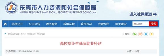 东莞给高校毕业生发就业补贴了!