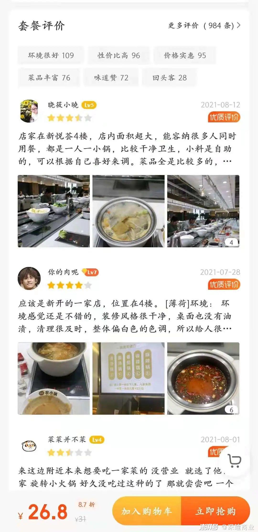 也就是说,餐厅老板在抖音上,有更强的底气去卖并不比美团优惠的套餐,有信心在不打价格牌就获得消费者的青睐。