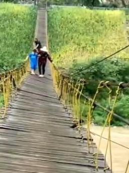原标题:《陕西一吊桥桥面倾斜数月 村民冒险通行……》
