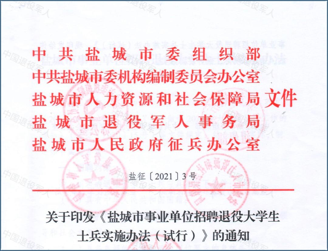 江苏省以《盐城市事业单位招聘退役大学生士兵实施办法 (试行 )》为例