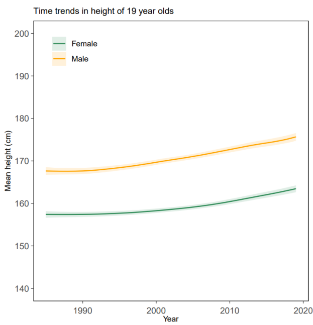 3.Rodriguez-Martinez, Andrea, et al. "Height and body-mass index trajectories of school-aged children and adolescents from 1985 to 2019 in 200 countries and territories: a pooled analysis of 2181 population-based studies with 65 million participants." The Lancet 396.10261 (2020): 1511-1524.