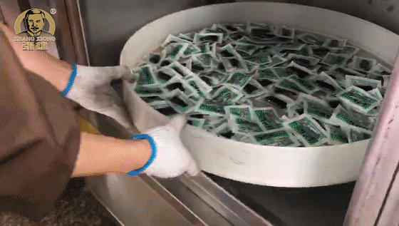 独立小包装采用的是耐130℃高温的食品级内袋,真空包装好后还要经过高温杀菌,冷却后再称重分装成袋。