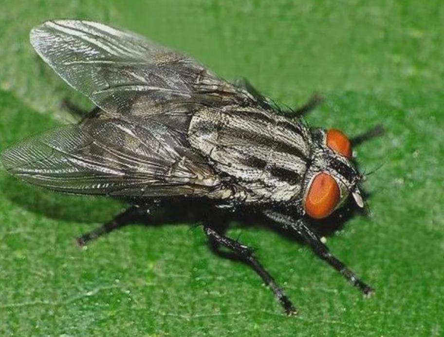 图为家蝇成虫,来源网络我们生活中还有一种常见的苍蝇——麻蝇,也称“肉蝇”。麻蝇的繁殖方式是卵胎生,即直接产出幼虫(蛆)。麻蝇的嗅觉很灵敏,能够被数米到数百米外的食物香味所吸引,并在食物表面温度变得适宜后产下幼虫。我们未及时吃完而直接裸露在环境中的食物,一旦遇有麻蝇,那么2-3个小时就足以让它们在上面散布很多会蠕动的“宝宝”了。