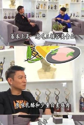 在控制饮食这一块,香港男星几乎到了变态的地步。刘德华在宣传《拆弹专家2》提到,自己全年只吃谷类食物和白煮鸡胸肉,高热量的食物丝毫不敢碰。