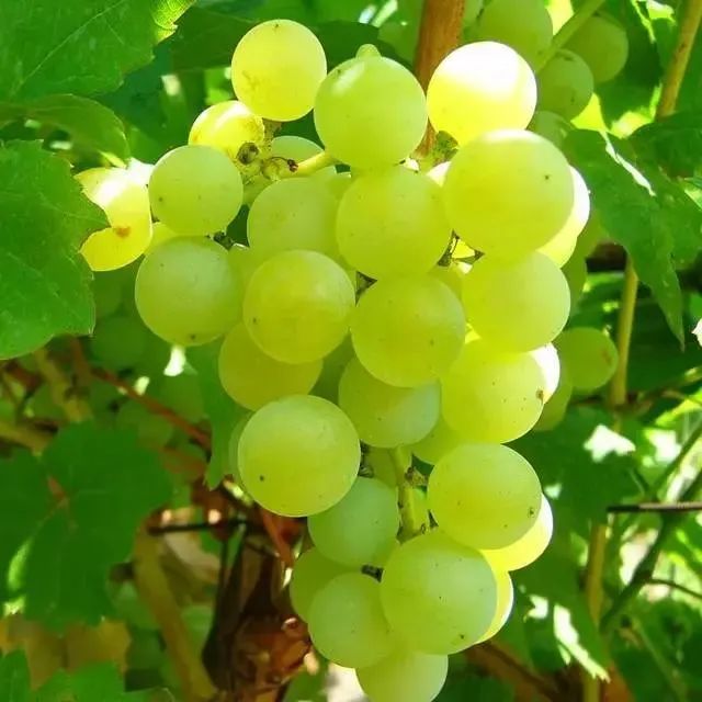 金手指园中金手指葡萄,果穗中等大,长圆锥形,着粒松紧适度,平均穗重 445 克,最大980克,果粒长椭圆形至长形,略弯曲,呈菱角状,黄白色,平均粒重 7.5 克,最大可达 10克。无小青粒,果粉厚,极美观,果皮薄,可剥离,可以带皮吃。含可溶性固形物18~23% ,最高达28.3% ,有浓郁的冰糖味和牛奶味,品质极上。不易裂果,耐挤压,耐贮运性好。