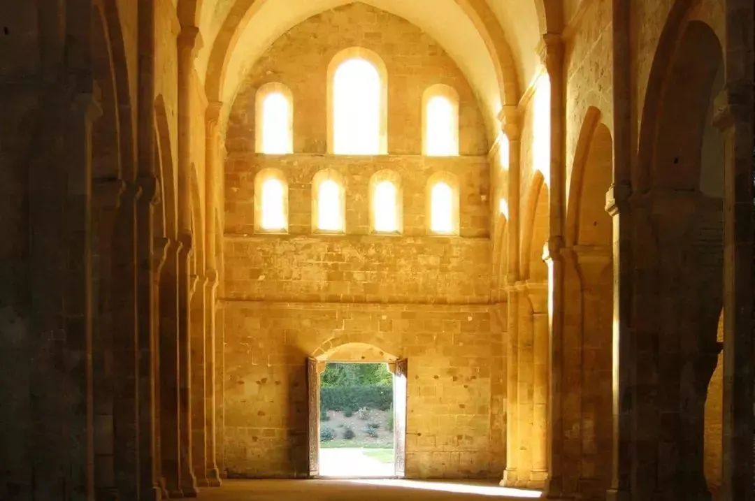 丰特耐修道院的设计,充分贯彻了透光的原则中世纪人对色彩的喜爱在形而上隐喻中和日常生活中都有反映。然而,中世纪人其实很清楚,这一对美的质性构想与基于比例的美学观念不完全相容。其区别已在圣奥古斯丁的观点中有所体现,而且他无疑注意到普罗提诺也持有相同的观点。只要让色彩引起的愉悦不进入批评领域,只要将光之隐喻的使用限于神秘主义和宜人却定义不清的宇宙学范畴,就可以避免冲突。除此以外, 13世纪的经院哲学还面临着另一个问题。他们对于光的构想来自多个源头,全部深受新柏拉图主义的影响;但是,之后他们又发展出两种光的哲学:一种是物理—美学的宇宙学,一种是形式的本体论。第一种路径的代表人物是格罗斯泰斯特和圣文德;取道第二种路径的则有阿尔伯图斯•马格努斯和圣托马斯·阿奎那。