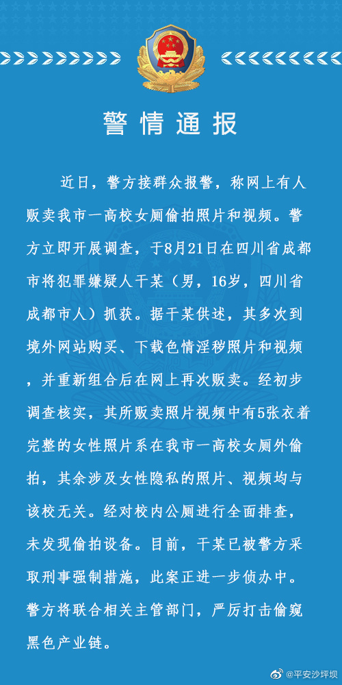 重庆一高校女生如厕视频被兜售?警方通报:16岁嫌疑人被拘