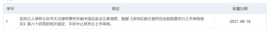 创业板发行上市审核信息公开网站8月18日显示,由于发行人律师事务所被中国证监会立案调查,根据相关规定,深交所中止比亚迪半导体发行上市审核。该律师事务所为北京天元律师事务所。