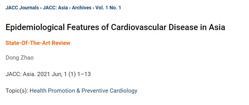 [1]Dong Zhao, 2021. Epidemiological Features of Cardiovascular Disease in Asia. JACC: Asia. 2021 Jun, 1 (1) 1–13. https://www.jacc.org/doi/10.1016/j.jacasi.2021.04.007