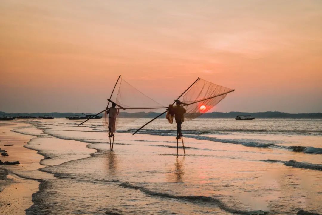 中国唯一的海洋民族——京族也在此繁衍生息,他们至今依然沿用着最原始的高跷捕鱼、虾灯捕虾的方式,并被列入了世界非物质文化遗产。