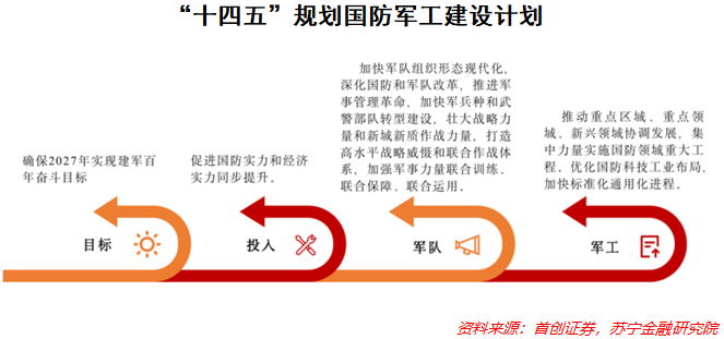 正因如此,我们看到了在《国民经济和社会发展第十四个五年规划和二〇三五年远景目标》中,针对国防军工的发展制定了多项计划,均彰显了国家强国强军政策有力执行的坚定决心。而在国家意志的驱动下,整个军工行业即将且必然迎来高速发展的全新时期。
