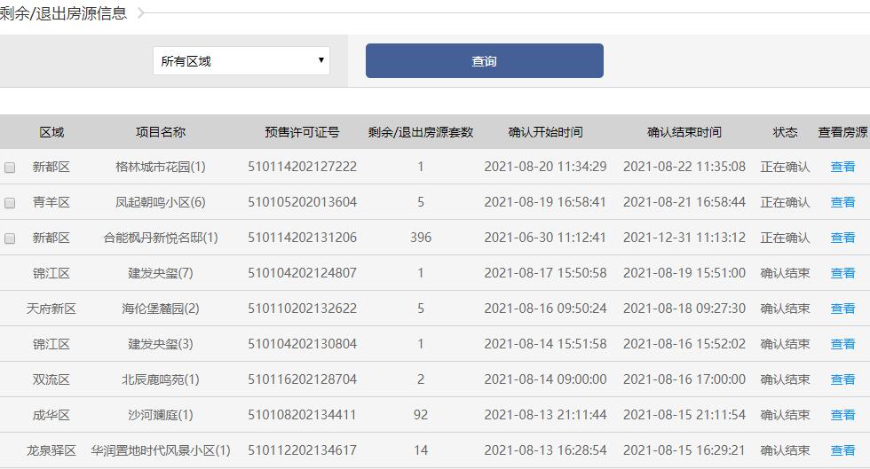 这么多热门项目齐开,势必会造成购房客群的分流。再加上银行严查首付款来源、拉长放贷周期拉长等原因,也就出现了部分项目报名火爆,但开盘后购房者却放弃选房的情况。据成都住建局网上政务大厅的购房登记系统显示,近期,整个成都核心区的热门项目还有超百套剩余/退出房源。