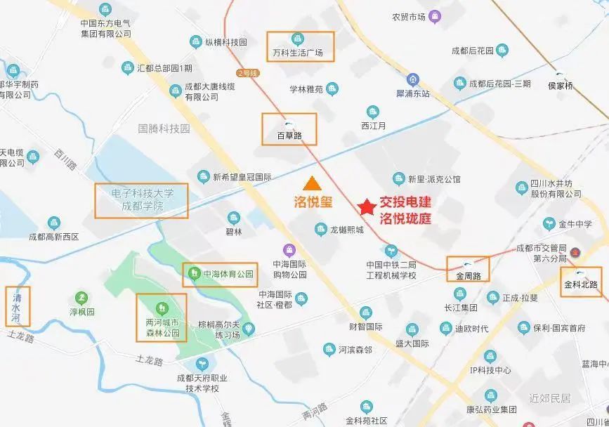 项目地处金牛区国宾板块,靠近西3.5环,距离2号线百草路站较近,直线距离大约不到800米,轨道交通较便捷。