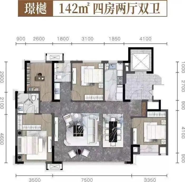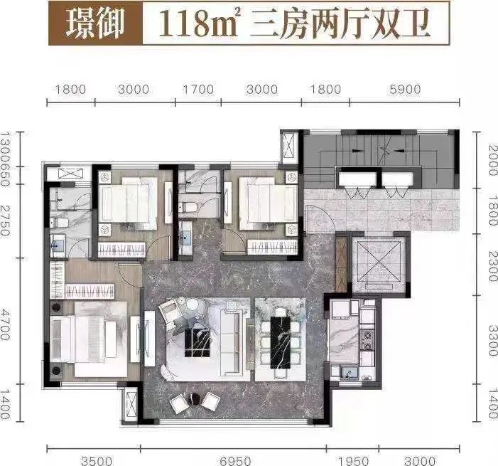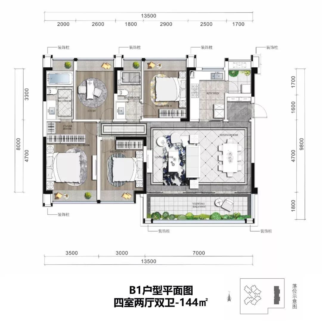 户型上,有建面约97-144㎡的几种户型,主打功能性,均含有客厅阳台+生活阳台,每户有一定飘窗赠送面积。其中,97-129㎡为高层户型,144㎡为洋房户型。