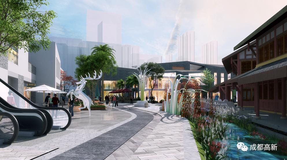 建筑面积逾千平,临水街内、位于1号楼与2号楼内侧,相对独立,采用钢结构建筑及木结构外观,将引进文创集合品牌等,体现天府生活美学。