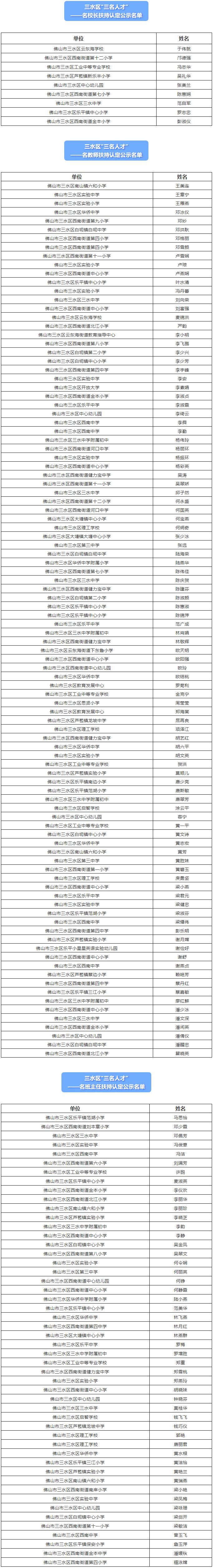 近日,佛山市三水区教育局发布关于三水区“三名人才”扶持认定名单的公示。名单显示,拟认定于伟就等9人为三水区基础教育“名校长”;王美连等100人为三水区基础教育“名教师”;马思怡等50人为三水区基础教育“名班主任”。>>来源:三水教育上下滑动查看