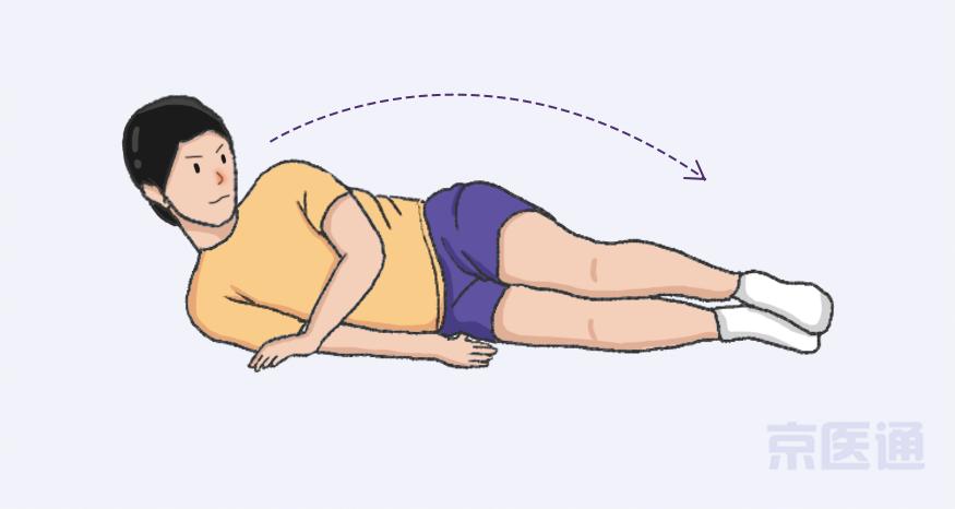 动作要点:侧躺在床上,堵住的一侧鼻孔朝上,然后抬头,视线越过身体看向自己的双脚的位置,维持住20秒左右。