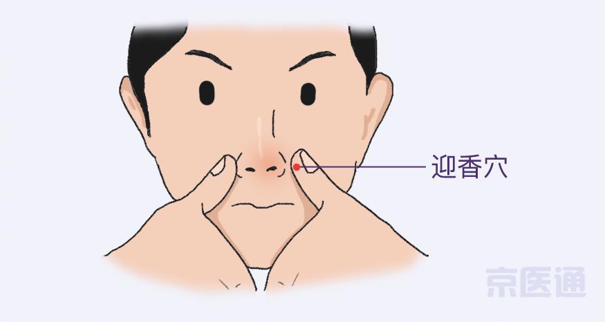 动作要点:用手指按揉鼻翼两侧的迎香穴,或用手掌两个大鱼际,快速擦迎香穴,摩擦穴位一分钟至局部发热。