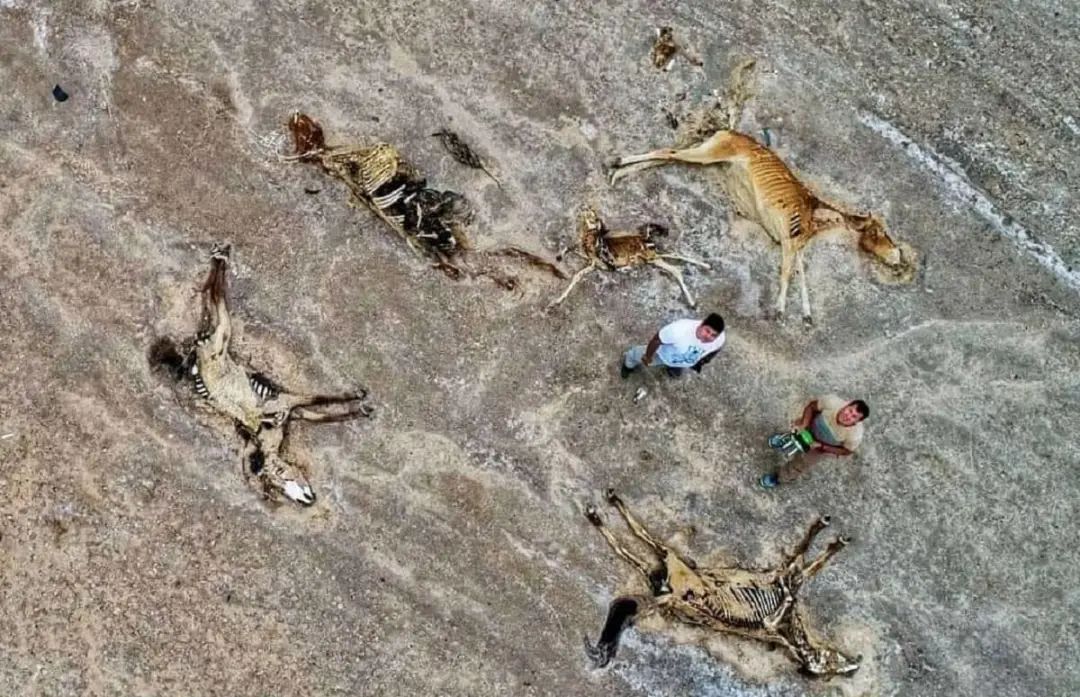 报道说,仅在哈萨克斯坦西部的曼吉斯托地区,就有一千多只动物死亡,包括马、牛、羊和骆驼。人们拍摄散落在干裂的土地上动物的尸体,并发布在网络上。