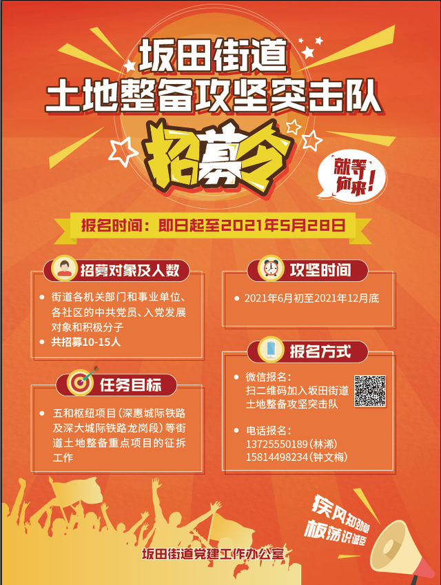 历来,在做强重难点项目临时党支部上,坂田街道以“三大特色”为基础,让能力强、作风硬的党员干部为重大项目攻坚克难提供坚强组织保障。每次成立临时党支部前,街道均向党员干部发出重大项目攻坚“集结号”,号召大家以自愿报名方式加入临时党支部。