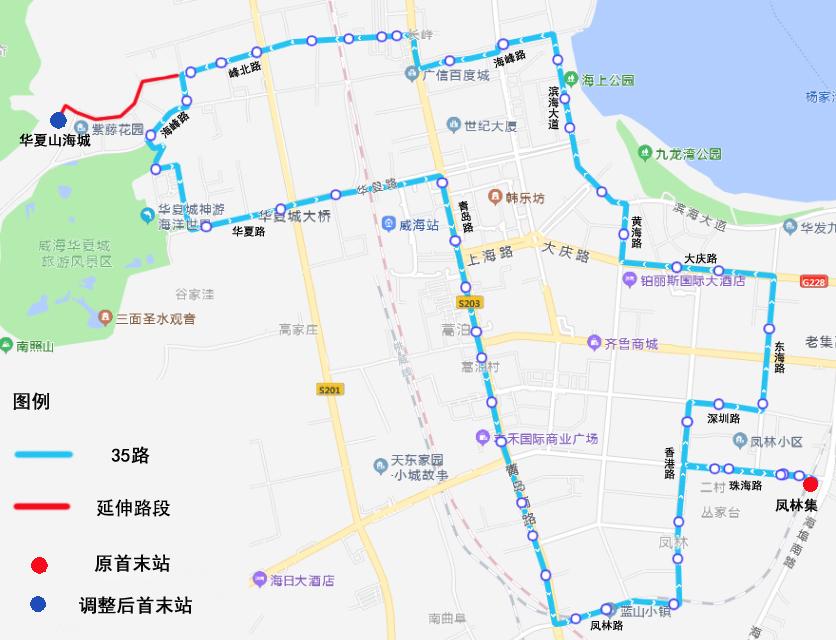 站点调整:取消凤林小区东1个站点,增设华夏山海城(玉兰幼儿园)、向阳花园、山海城广场、百合花园4个站点。