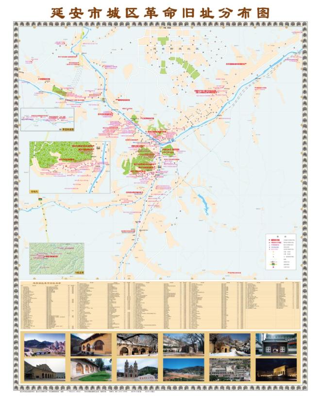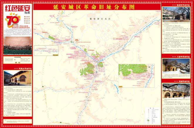 《延安市城区革命旧址分布图》和《延安革命旧址分布图》是同时编制的介绍延安革命旧址的系列图,两全开单面设计,以延安市城区为基础地理要素,详细标注了延安市城区内革命旧址的分布情况,配以革命旧址精美照片,使读者直观生动地领略到延安革命旧址的风采。