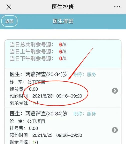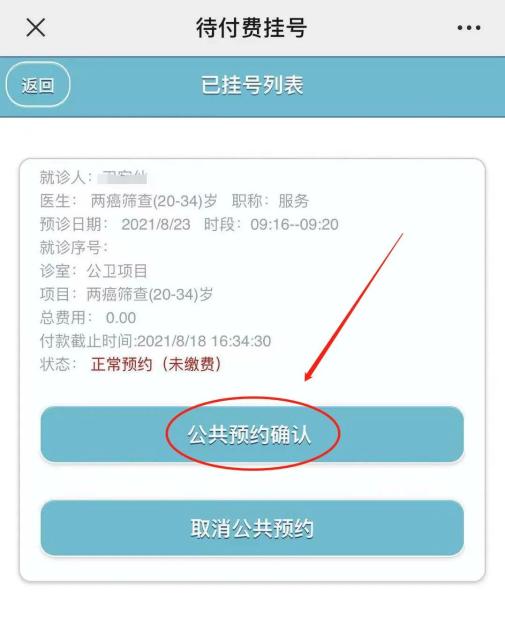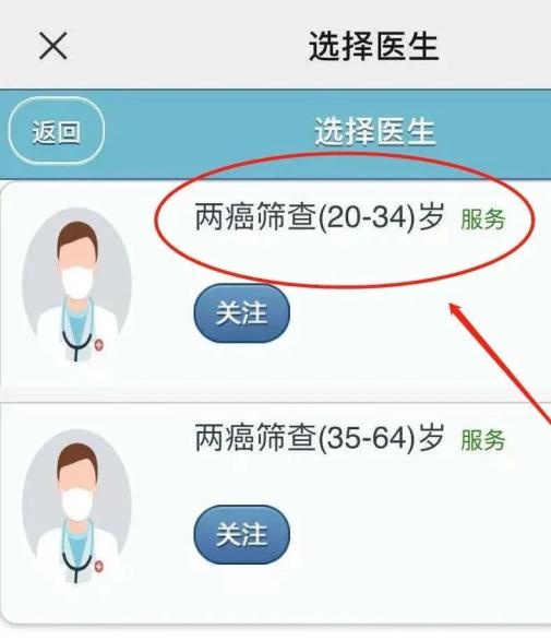 关注后,点击公众号下方菜单栏“两癌筛查”-“选择院区”-“选择档案”-“选择日期”-“选择医生”即可完成预约。
