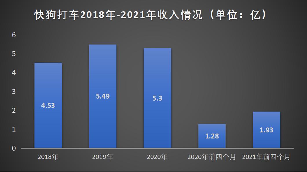 2018年、2019年、2020年,快狗打车的亏损净额分别为10.7亿元、1.84亿元、6.58亿元,截至2021年4月30日止四个月亏损净额为2.53亿元。2018年和2020年,快狗打车的亏损甚至要高于其收入,2018年的亏损更是收入的两倍有余。