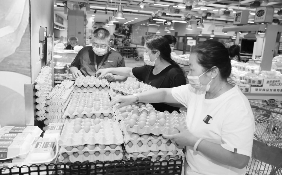 8月26日,记者在解放路永辉超市看到,当天的鸡蛋价格5.09元/斤,相较于其他超市和农贸市场价格偏低一些,很多市民在争相购买。