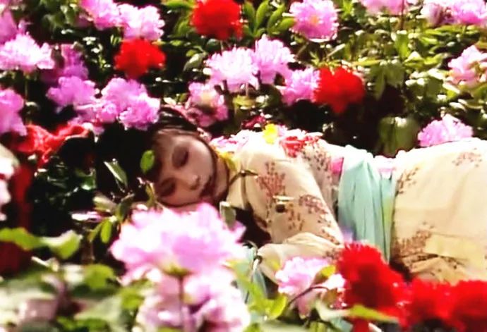 史湘云是醉卧在花丛中的,而贾宝玉有一个别号是“绛洞花主”。