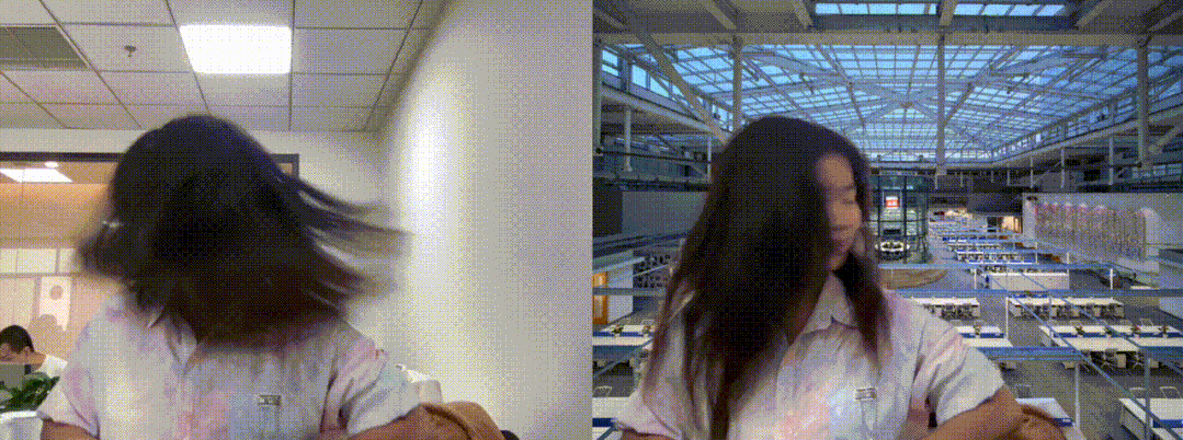 相比之下,现在在线会议软件里的抠图,一旦头发遮住脸,人就会消失……