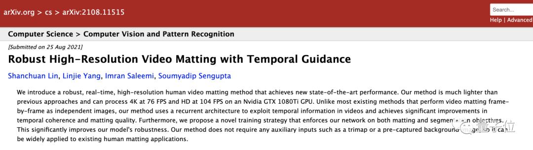 他以一作身份发表论文《Real-Time High-Resolution Background Matting》,提出了Background Matting V2方法。