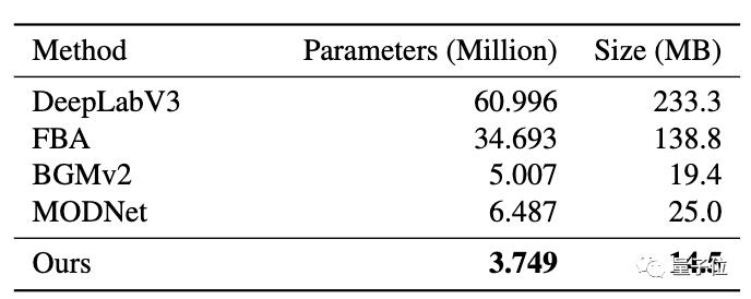 从下面这张表格中可以看出,在1080p视频上RVM的处理速度是最快的,在512×288上比BGMv2略慢,在4K视频上则比带FGF的MODNet慢一点。研究人员分析,这是因为RVM除了alpha通道外还预判了前景。