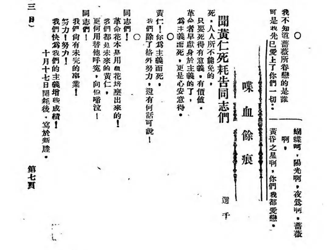 1924年《民国日报·觉悟》 刊登悼念黄仁的诗歌