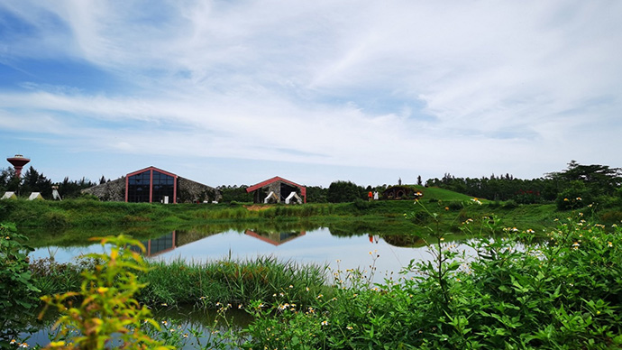 除了有人文古迹的厚重,临高也有小情调的细腻。在临高的环海公路上,头洋海堂文创园浓缩了童年记忆和幻想。垒砌的院墙古色古香,院里的果树累累果实,延伸着儿时记忆的回想。沿着小路前行,孩提时候的幻想世界更加明朗,铺满路径的鲜花,霍比特人的小屋,ins风帐篷,星空泡泡屋,小巴士,玻璃房子,处处充满了童话的色彩,在蓝天白云的映衬下更显精致和斑斓。