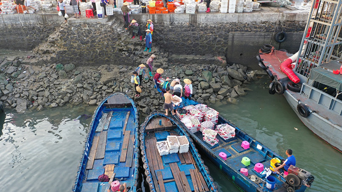 如果起得早,建议到新盈港见识一下晨曦时分的繁忙。当大大小小渔船的汽笛声划破了港口的黑夜,新盈港便迎来这一天之中最忙碌的时间,一框框的渔获被早已等在岸上的人排列传递,卡车、小货车、三轮车在堤坝上穿行,人们肩挑车载,为的就是与时间抢占这些来之不易渔获的新鲜。