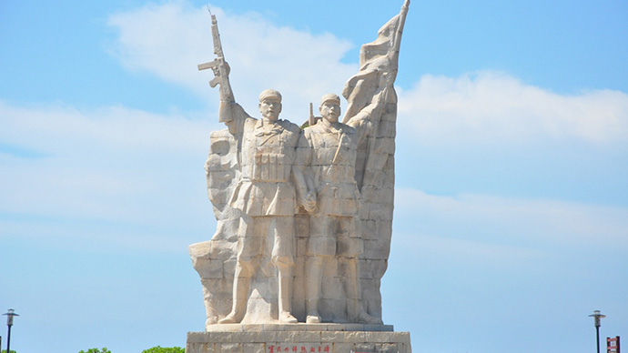 饭饱小憩过后,便可前往本次旅行的最后一站,解放公园。说到解放公园,让人第一刻想起的就是那场惨烈而伟大的解放海南岛战争。 1950年,解放海南战役拉开了帷幕。解放军四十军6 个团18700 多人在临高角登陆。冒着敌人的枪林弹雨,冲破了海峡封锁,越战壕,破铁网,炸碉堡,夺险隘,成功地摧毁了薛岳精心构造的海陆空立体防线,表现出了我军所向披靡、战无不胜的英雄气概。战斗中,四十军880多人英勇牺牲,四十军一一九师副师长黄长轩以身殉职,长眠于临高这片热土。1995年,经海南省政府同意,共青团海南省委发起,海南人民共同捐款,投入520万元修建了一座解放海南纪念塑像——两名战士胜利呐喊的人身组石像。如今这里已经建成了一座解放公园,里面增设了解放海南临高角登陆纪念馆,修建了观海栈道,园内花团锦簇,树木亭亭,英雄的鲜血早已经融入了这片土地的芳香,英雄远去,只留其名,蓦然抬头一看,还有一座历经百年古灯塔默默守候在他们身旁。