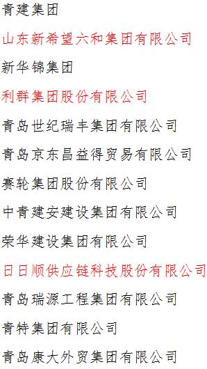 山东民营企业100强青岛入围企业名单