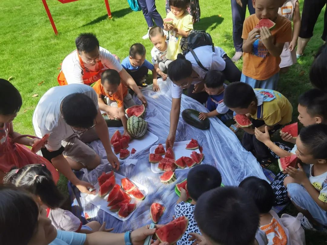 最后,通过亲子间的默契配合开展蒙眼打西瓜游戏,一起品尝西瓜的甜美。