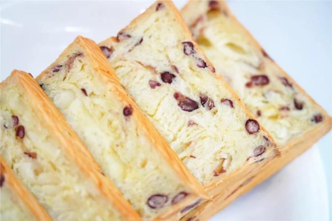 颗粒饱满的红豆,嵌入吐司的纹理中