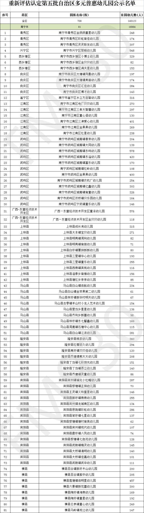 重新评估认定第五批708所自治区多元普惠幼儿园名单中,