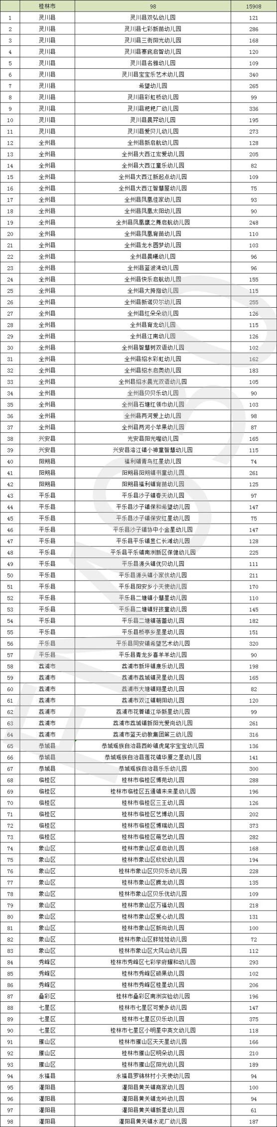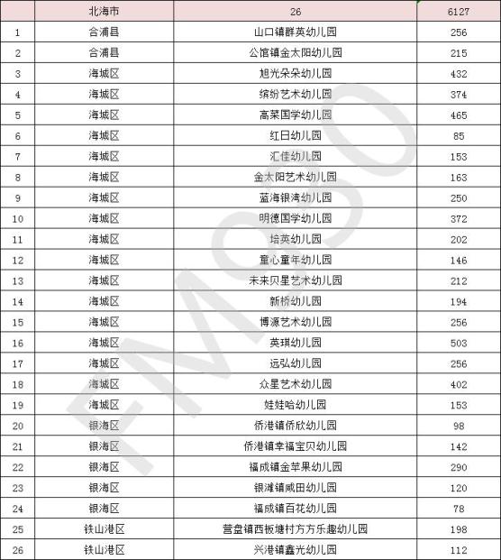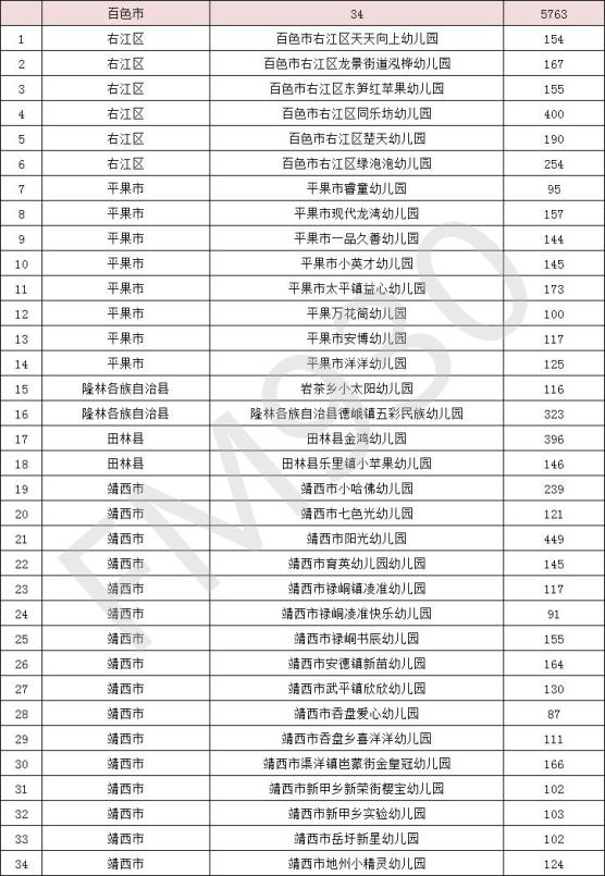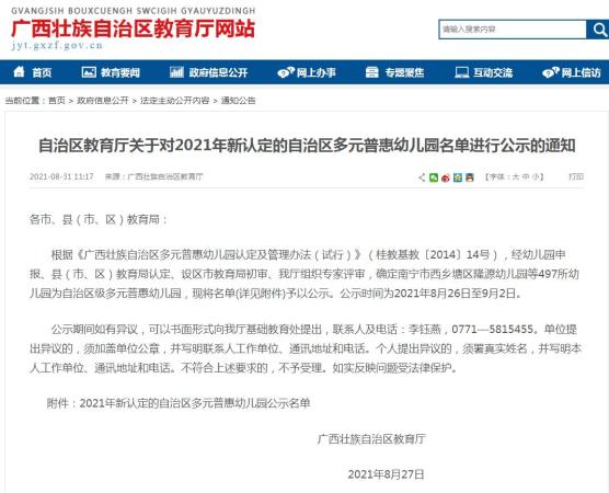 经幼儿园申报、县(市、区)教育局认定、设区市教育局初审、教育厅组织专家评审,确定南宁市西乡塘区隆源幼儿园等497所幼儿园为自治区级多元普惠幼儿园,现将名单予以公示。公示时间为2021年8月26日至9月2日。