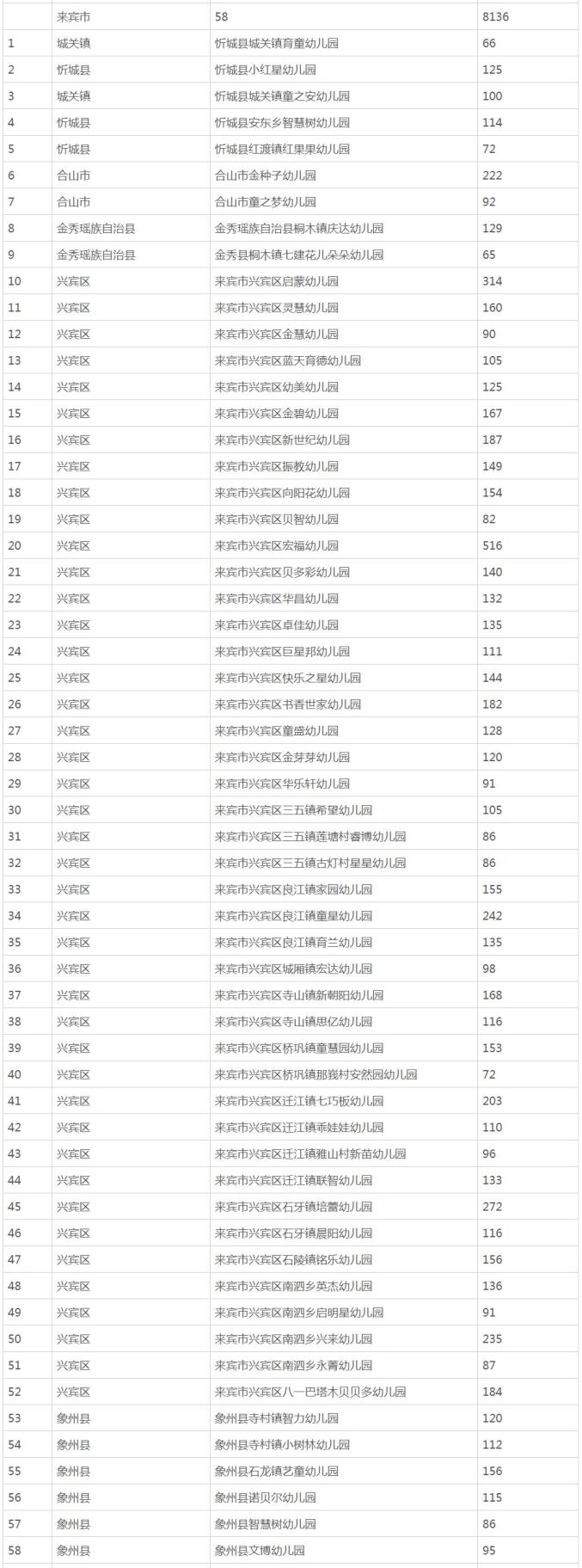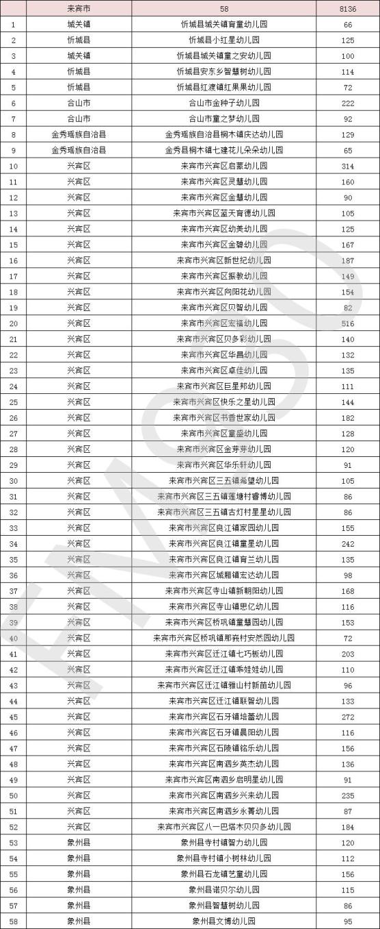 来宾市有58所↓↓↓