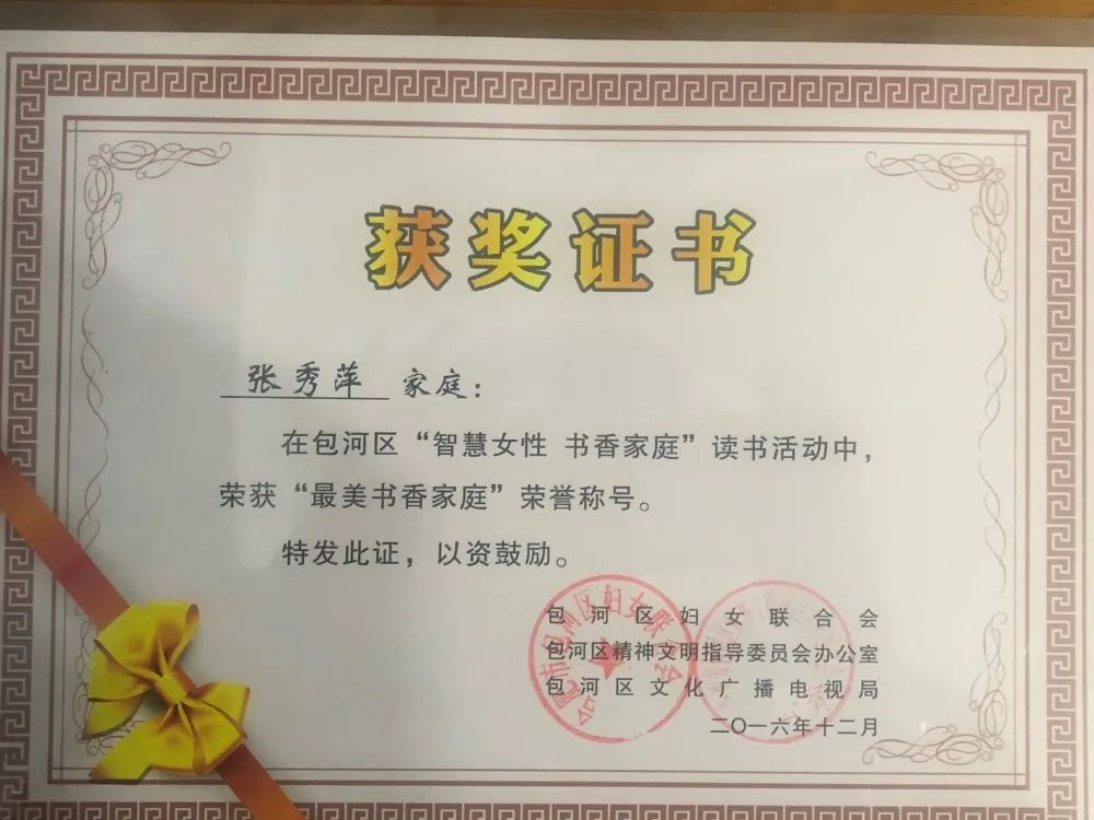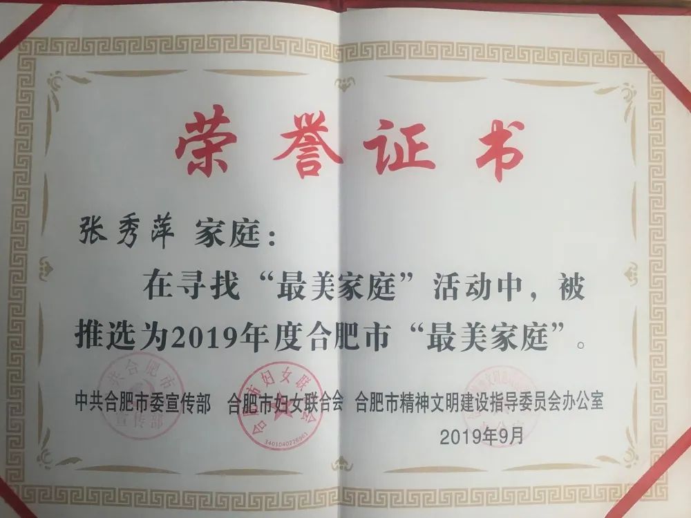图 | 张秀萍家庭所获荣誉