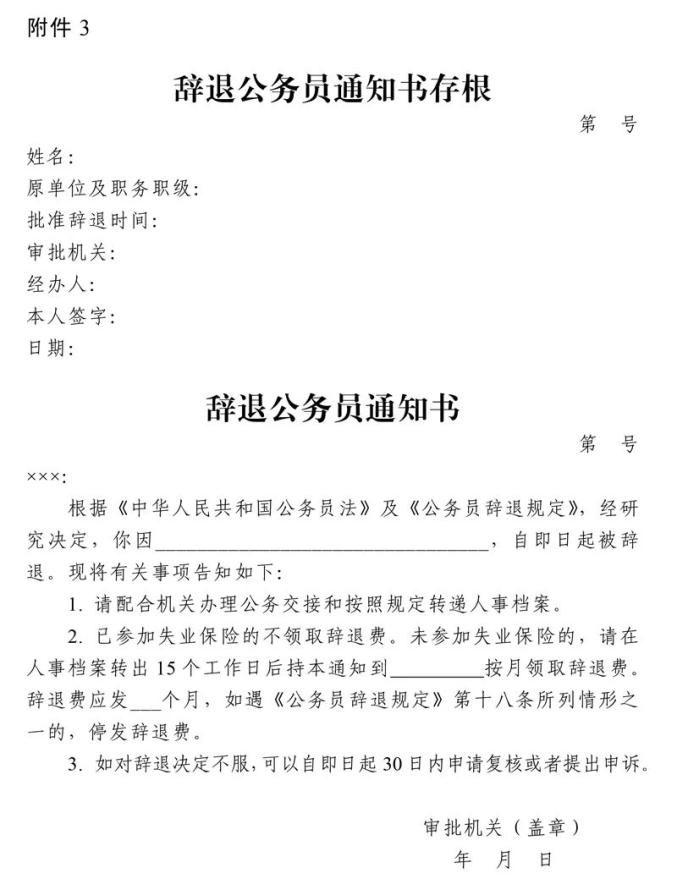 3.辞退公务员通知书
