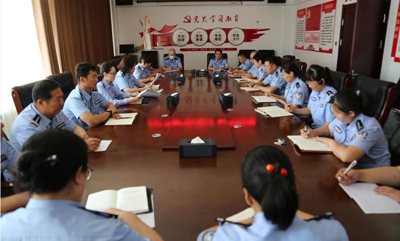人民警察训练支队党支部按照上级统一安排部署,召开支部扩大会议,深入学习习近平总书记“七一”重要讲话精神,支部书记梁秀红同志为全体党员讲授党课。